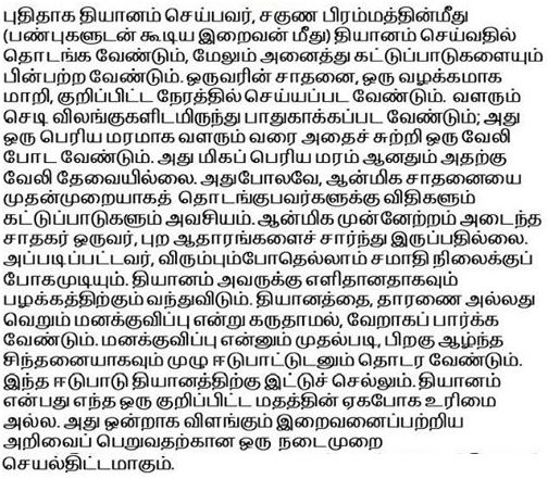 Engkau mungkin memiliki gambar Sai Baba dihadapanmu, atau sebuah gambar dari logam atau arca dari batu. Namun, jika engkau memiliki keyakinan bahwa keilahian hadir dan bersemayam di dalamnya, dan bahwa keilahian itu juga bersemayam di dalam hatimu dan juga bersemayam di dalam hati semuanya, kemudian engkau akan mendapatkan kebahagiaan dari pengetahuan bahwa keilahian itu bersifat ada dimana-mana, Maha tahu dan Maha kuasa. Keilahian adalah sebuah anggur, yang akan memabukkanmu. Anggur ini dihasilkan dari nektar dimana nama Tuhan diresapi di dalamnya. Cicipi dan engkau akan lupa segalanya; engkau mengalami perubahan. Ramakrishna biasanya menangis dalam duka cita akan kehilangan satu hari, tanpa pandangan akan ibu ilahi. Milikilah kerinduan itu, rasakan perasaan itu menggelora: Berushalah untuk mengetahui sekarang, rindukan untuk kebahagiaan pada momen ini. Jangan menunda atau menghabiskan waktu dalam membicarakan orang lain.