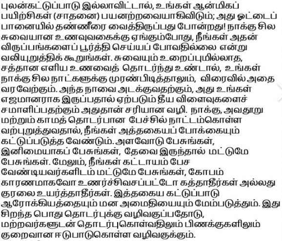 As pessoas recitam a Bhagavad Gita (a Canção do Senhor), alcançam proficiência em apresentá-la, mas não vivem de acordo com sua mensagem. A Gita é interpretada de várias maneiras, de acordo com os caprichos e fantasias de cada um. A Gita e outros textos das escrituras são como a árvore que satisfaz os desejos (Kalpavriksha). Eles se prestam a interpretações e significados variados. Contudo, o que importa não é a interpretação múltipla, mas o entendimento derivado da experiência real. Sem colocar em prática os ensinamentos da Gita, não podemos conseguir a felicidade que pode ser obtida disso. Recitar a Gita interminavelmente ou ouvi-la será inútil, se nada for feito para purificar o coração e se livrar de más qualidades como o ego, egoísmo e orgulho. É melhor colocar em prática uma única estrofe da Gita do que memorizar todos os 700 versos. Nenhum estudo espiritual ou disciplina espiritual (sadhana) pode ajudar a purificar o coração, a menos que se faça um esforço. E quando o coração for purificado, ele se tornará uma morada digna para o Divino.