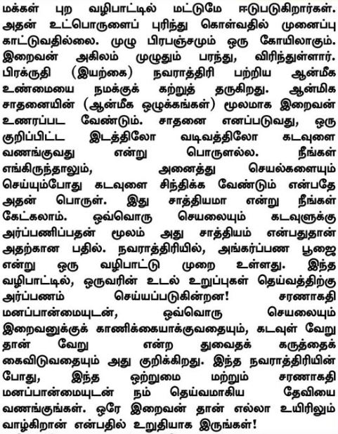Όλοι σας οφείλετε να εκτελείτε δύο τελετουργίες θυσίας καθημερινά. Όταν τρώτε, να θυμάστε πως προσφέρετε τροφή στη φωτιά που έχει ανάψει εντός σας ο Θεός, για ν’ αφομοιώσετε αυτήν την τροφή. Να τρώτε προσευχόμενοι και με βαθιά ευγνωμοσύνη. Η Γκίτα διδάσκει πως η φωτιά με την οποία μαγειρεύετε το γεύμα σας είναι Θεός, το ίδιο το γεύμα είναι Θεός κι αυτός που το καταναλώνει είναι Θεός. Ο σκοπός του φαγητού είναι να σας δώσει τη δυνατότητα να συνεχίσετε τα καθήκοντά σας όπως σας τα εμπιστεύτηκε ο Θεός και πως ο καρπός όλης αυτής της εργασίας είναι η πρόοδος στον δρόμο προς Εκείνον. Η δεύτερη θυσιαστική τελετή είναι αυτή: Ρίξτε τις εγωιστικές σας επιθυμίες, τα συναισθήματα, τα πάθη, τις παρορμήσεις και τις πράξεις σας στις φλόγες της αφιέρωσης και της αφοσίωσης. Αυτή είναι αληθινή τελετουργική θυσία! Όπως ακριβώς ένα παιδί διδάσκεται να προφέρει τις λέξεις ``κεφάλι``, ``δίχτυ``, ``γιρλάντα`` και άλλες, συσχετίζοντας τους ήχους και τα γράμματα με τις εικόνες των αντικειμένων, ομοίως, μέσω αυτών των εφήμερων και κοσμικών συμβολισμών, η Αιώνια, Άφθαρτη Αρχή πρέπει να τίθεται ενώπιον της συνείδησης.